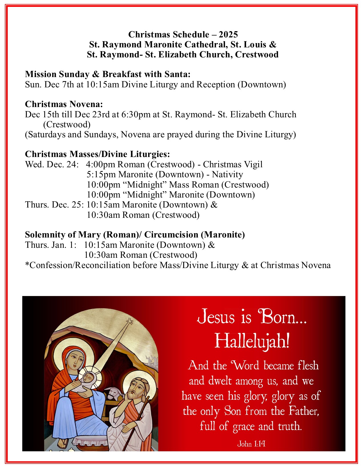 - Christmas Schedule 2025